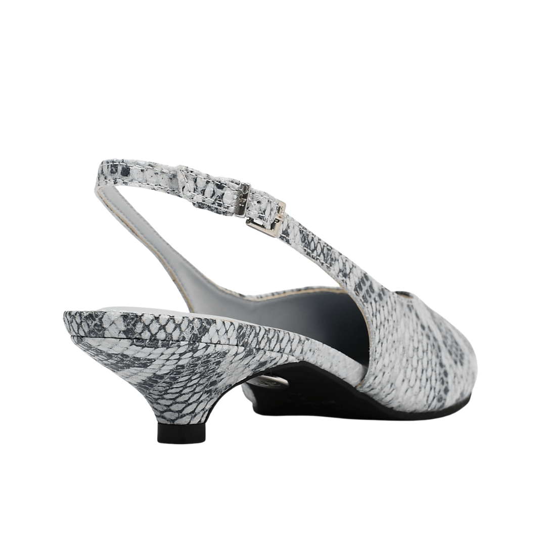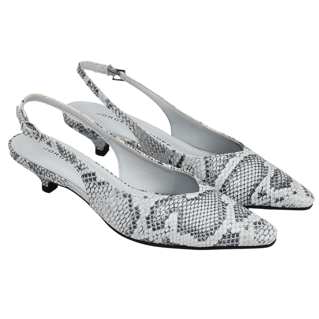Ref: Slingback Jorge Bischoff Feminino Salto Baixo Snake Azul Hortênsia Couro