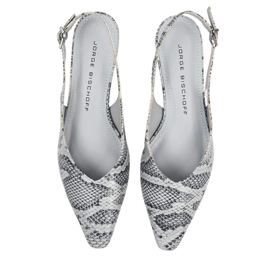 O Slingback Jorge Bischoff Snake Azul Hortênsia é sinônimo de elegância, conforto e exclusividade.