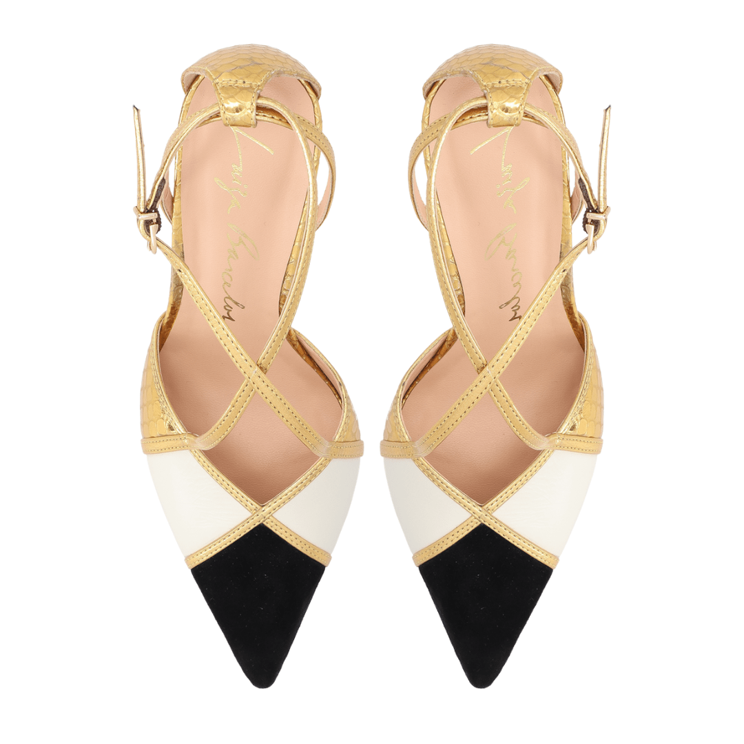 Slingback Luiza Barcelos Feminino Multicor Dourado Couro
