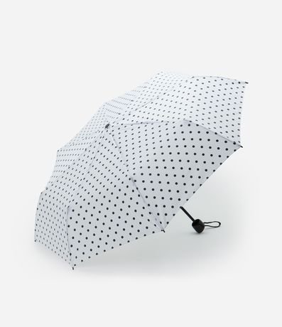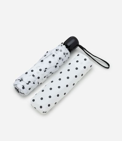 Ref: Sombrinha unissex em poliéster com estampa de poás. Possui estrutura dobrável, capa protetora com alça de pulso. Fácil de guardar na bolsa, ideal para uso diário.