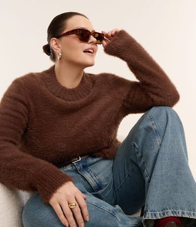 Suéter Alongado em Tricô Peludinho Curve & Plus Size