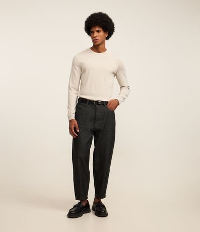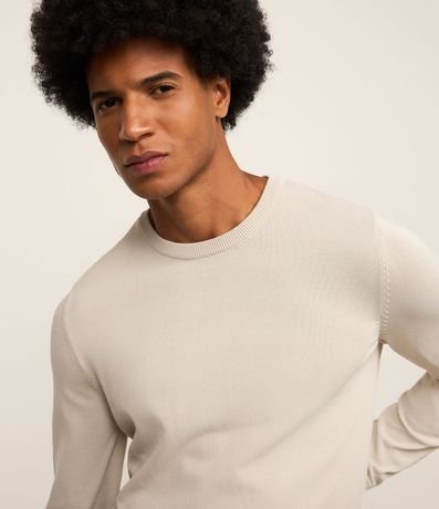 Suéter masculino confeccionado em viscose mais responsável, com gola redonda e sem estampa.