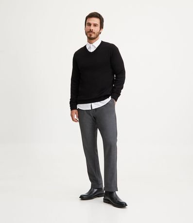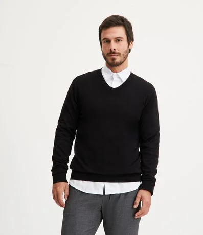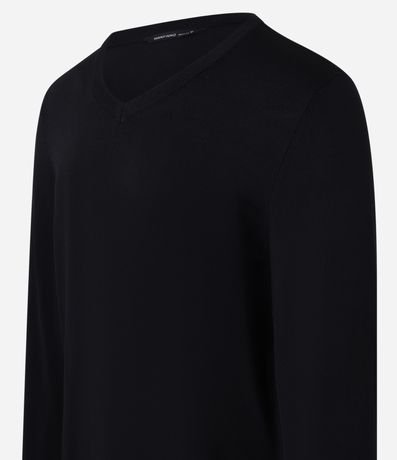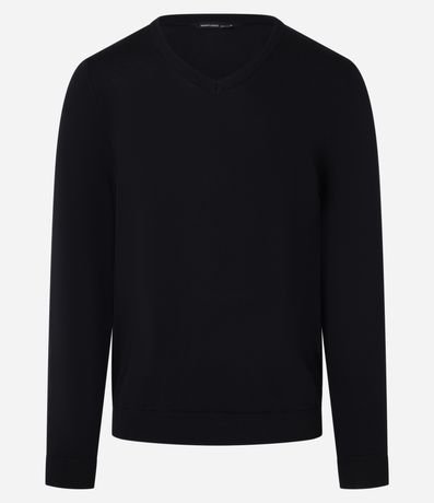 Suéter masculino confeccionado em viscose mais sustentável, com gola v, manga longa e sem estampa.
