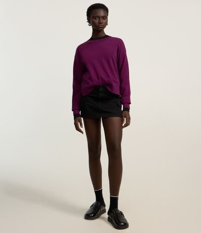 Suéter boxy, básico, confeccionado em tricô leve, manga longa com punhos e barra canelados.