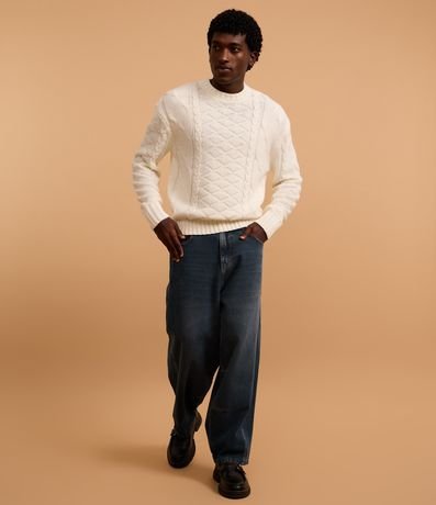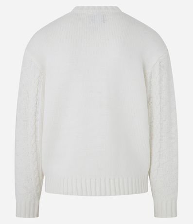 Ref: Suéter masculino confeccionado em tricô, com gola redonda, mangas longas. Peça no modelo boxy com detalhes de costuras variadas dando aquela nostalgia de peça tricotada pela vovó.