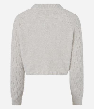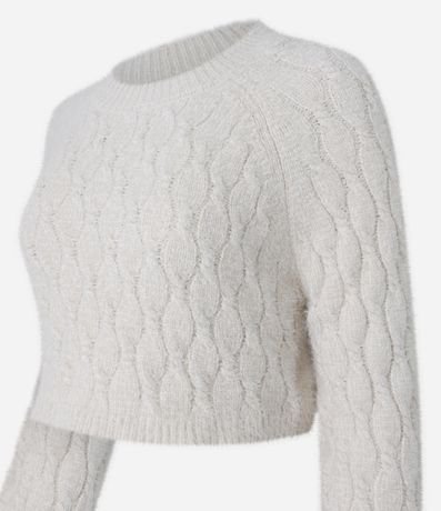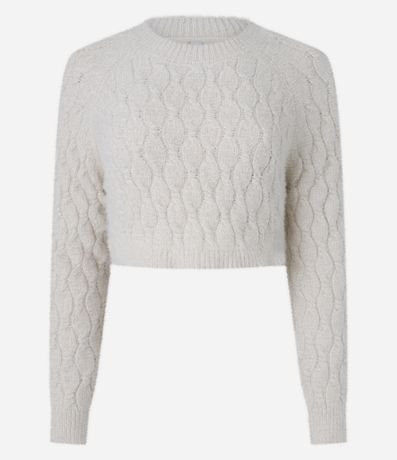Ref: Suéter cropped com manga longa, confeccionado em chenille, texturizado e com pelinhos.