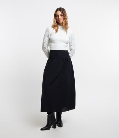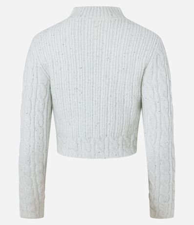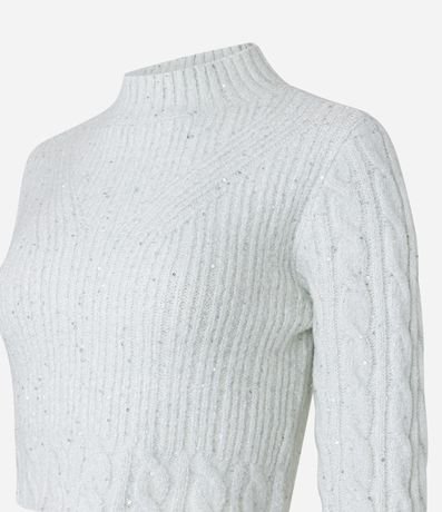 Ref: Suéter cropped, golinha alta, confeccionado em tricô pesado, texturizado e com paetês.