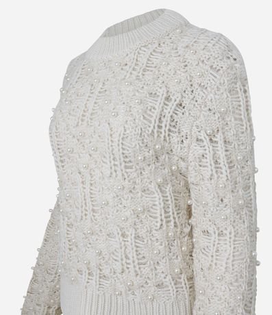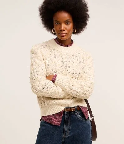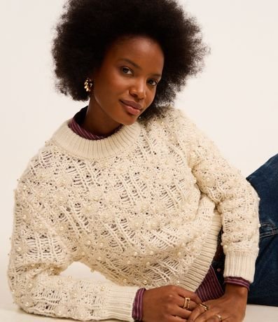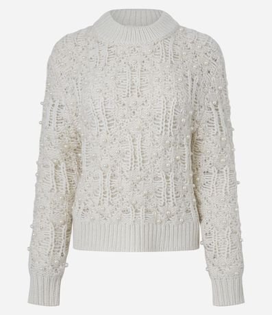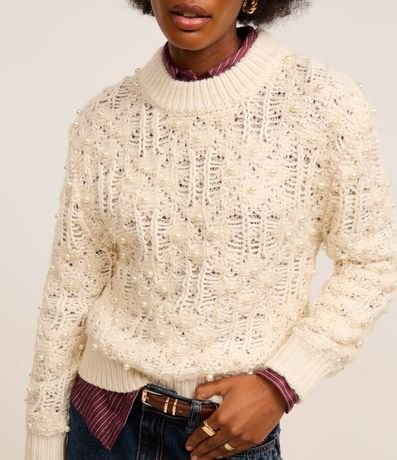 Ref: Suéter confeccionado em tricô com caimento pesado, com golinha alta e manhas longas. Esta blusa de frio dispõe de mix pontos com pérolas artificiais aplicadas no tecido.