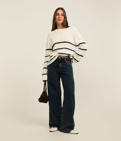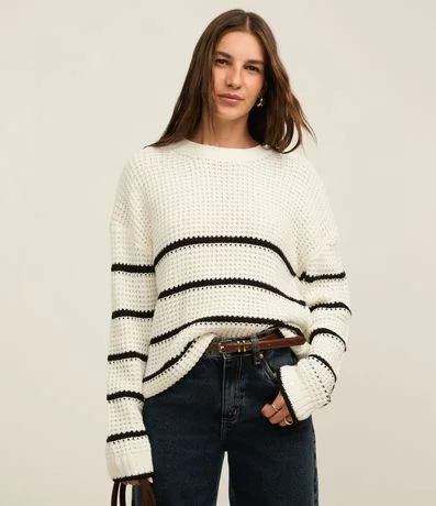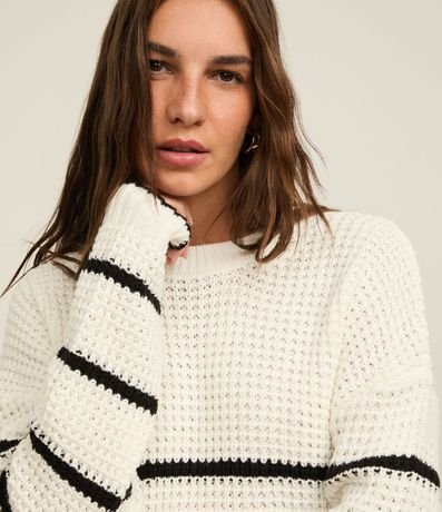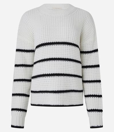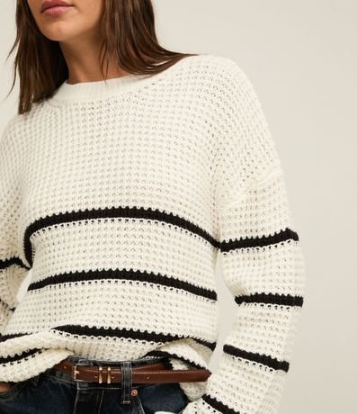 Suéter em Tricô com Cava Deslocada e Listras Horizontais