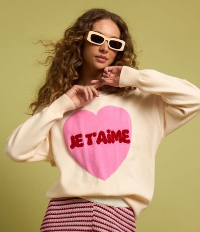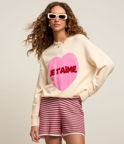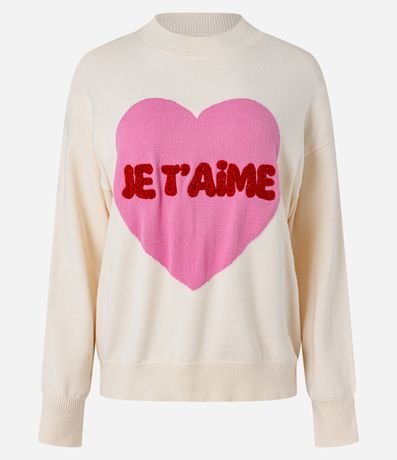 Ref: Suéter confeccionado em tricô pesado, manga longa e estampa frontal de coração com lettering Je T'Aime.