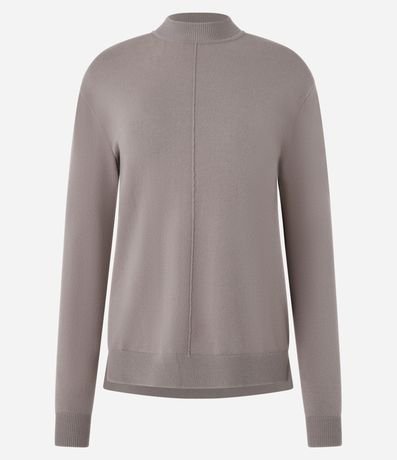 Suéter em Tricô com Gola Alta e Nervura Frontal