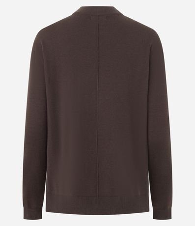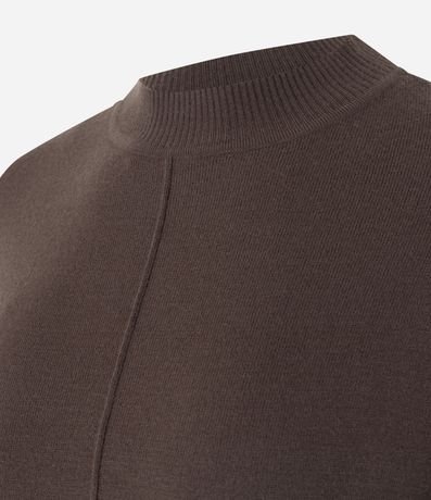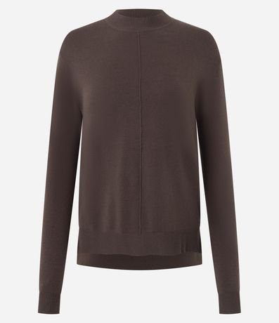 Ref: Suéter feminino, confeccionado em tricô, com golinha alta, mangas longas e detalhes de nervuras frontais (linhas retas em relevo).