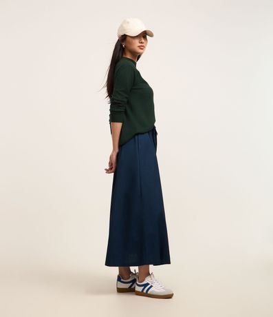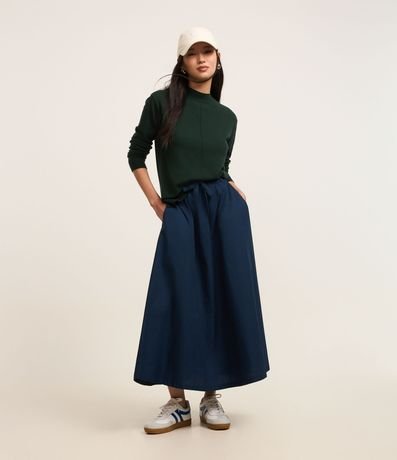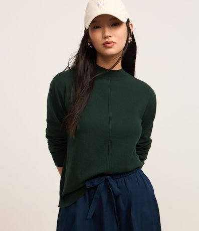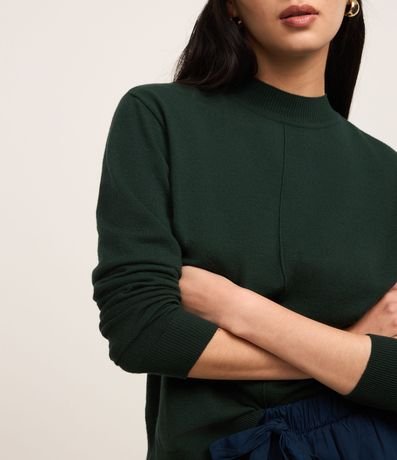 Suéter em Tricô com Gola Alta e Nervura Frontal