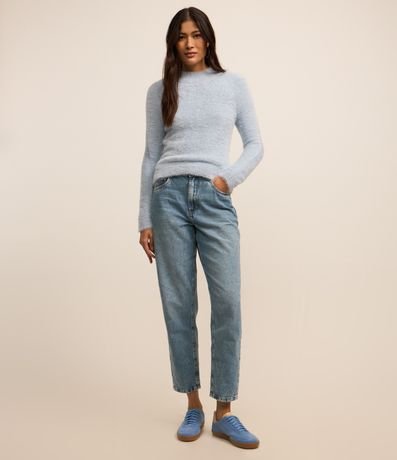 Ref: Suéter curto, confeccionado em tricô leve, peludinho e com gola alta.