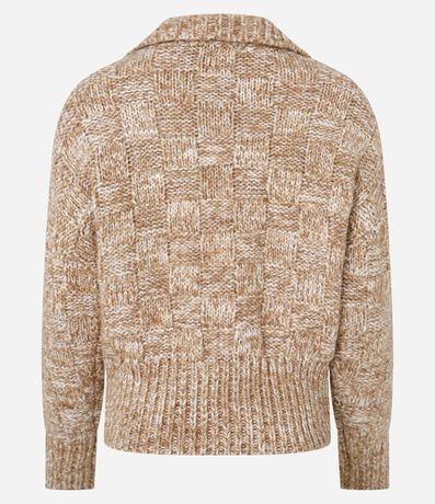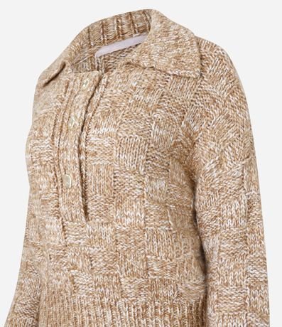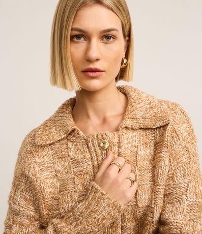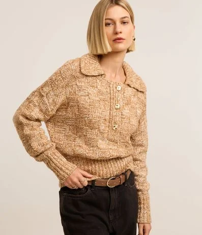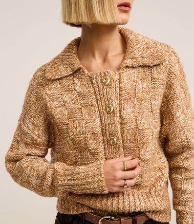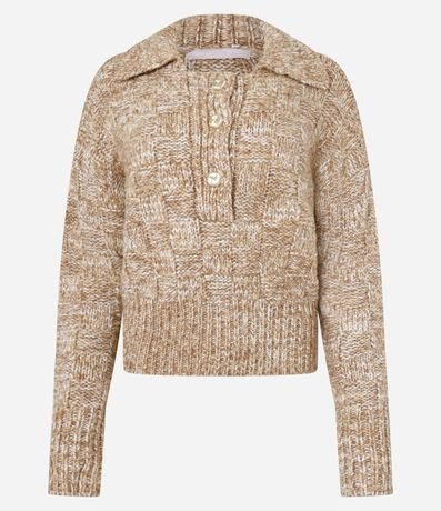 Suéter confeccionado em tricô com 02% de lã, com gola polo e detalhes de três botões. A peça é charmosa e cheia de estilo, veste muito bem e proporciona ótima respirabilidade.