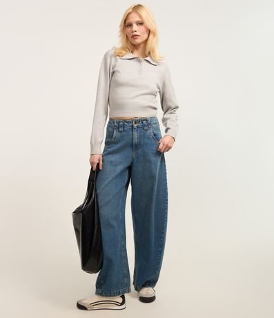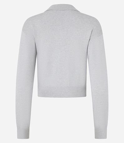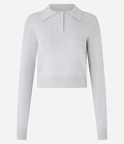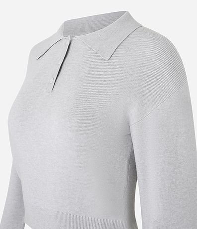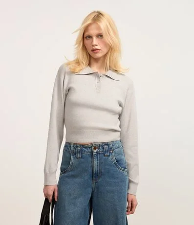 Ref: Suéter de comprimento mais curto, confeccionado em tricô com viscose mais sustentável, com gola polo. Esta blusa de frio possui botões na gola e caimento levinho.
