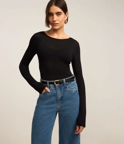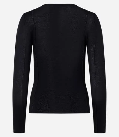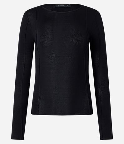 Suéter em Tricô com Gola Redonda e Frisos Frontais