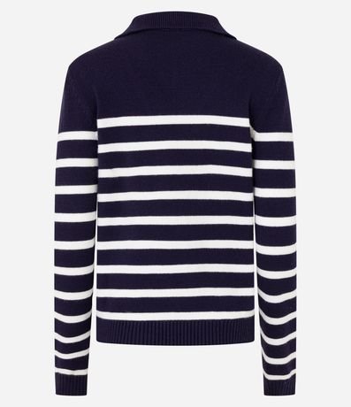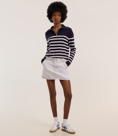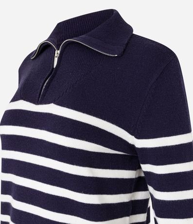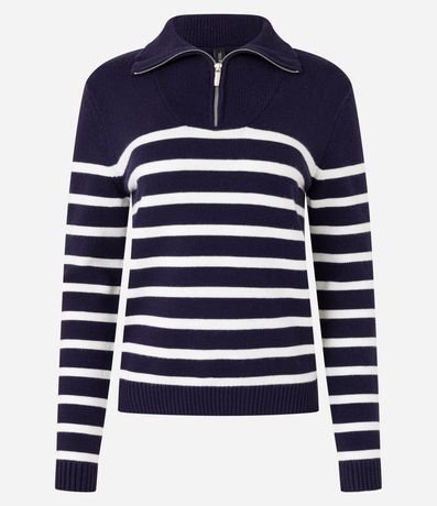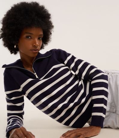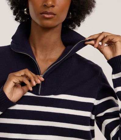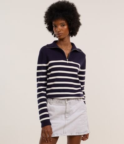 Ref: Suéter regular com gola alta e meio zíper frontal, com listras e confeccionado em tricô pesado.