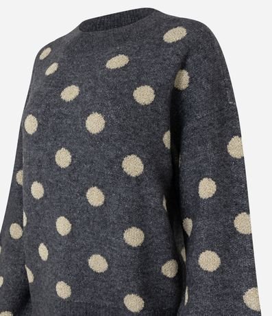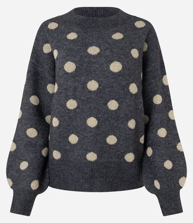 Ref: Suéter confeccionado em tricô pesado com mangas longas amplas e punhos ajustados. Conta com estamparia de poás - bolinhas - por toda a peça.