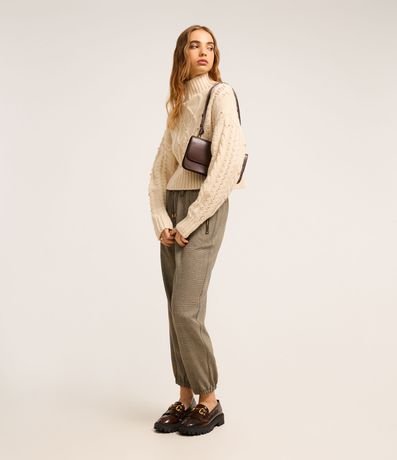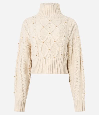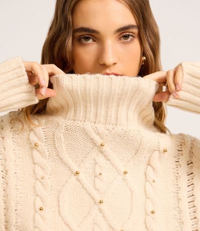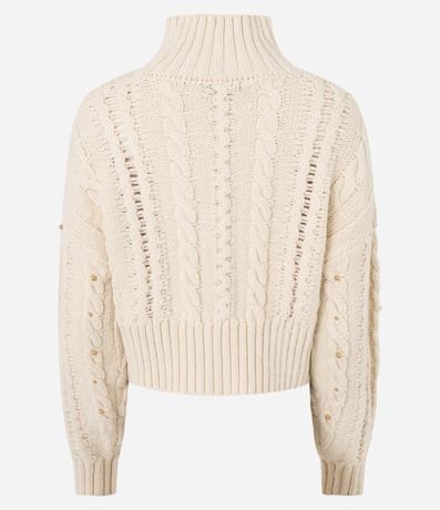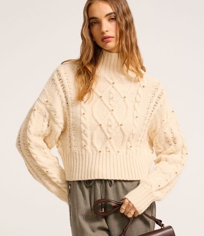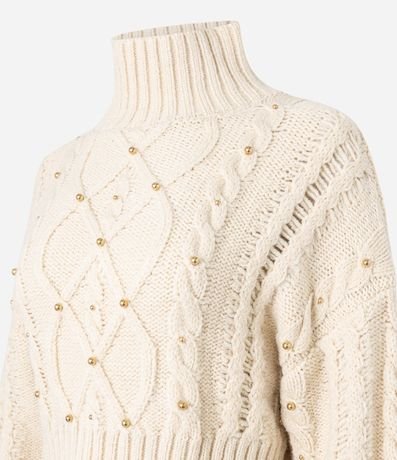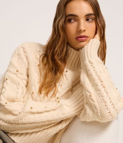 Ref: Suéter de golinha alta, confeccionada em tricô, com cavas deslocadas e mix pontos. Esta blusa de frio conta ainda com bolinhas metalizadas aplicadas.
