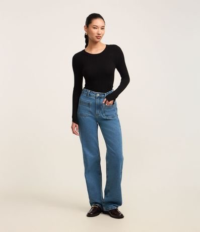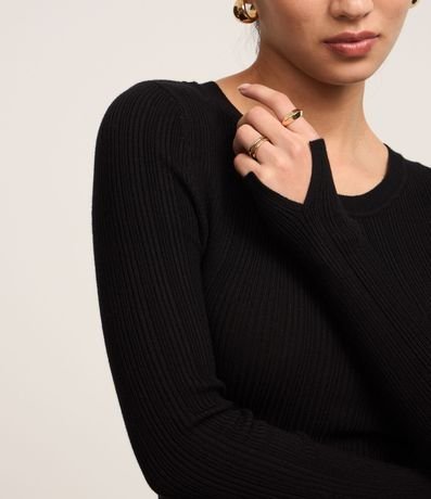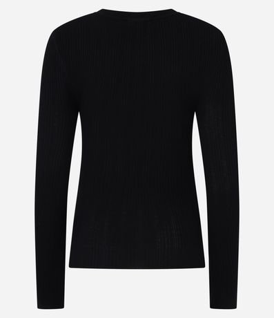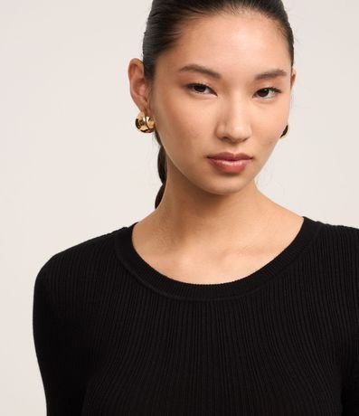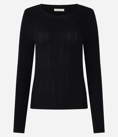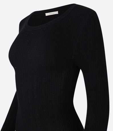 Suéter feminino manga longa, confeccionado em tricô, com textura canelada e gola careca.