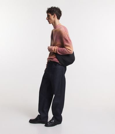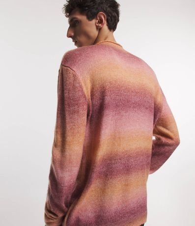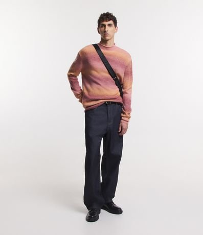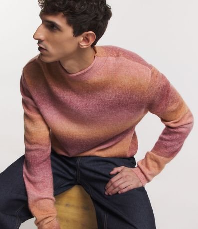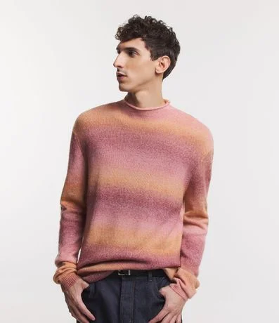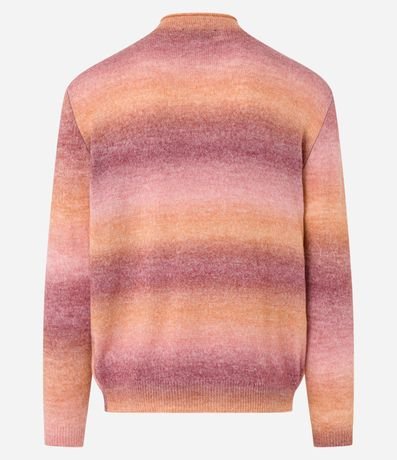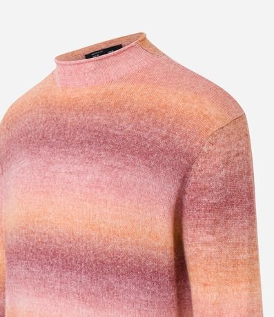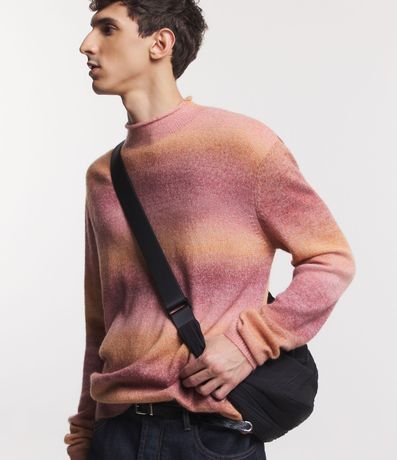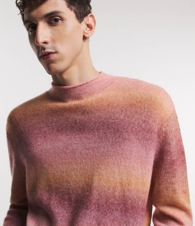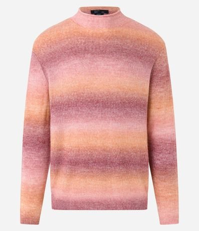 Suéter masculino em tricô leve com golinha alta, mangas longas com punhos ajustados e estampa degradê diferenciado.