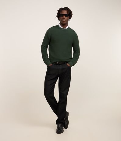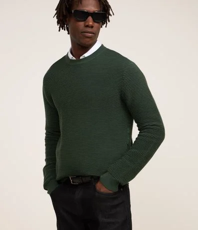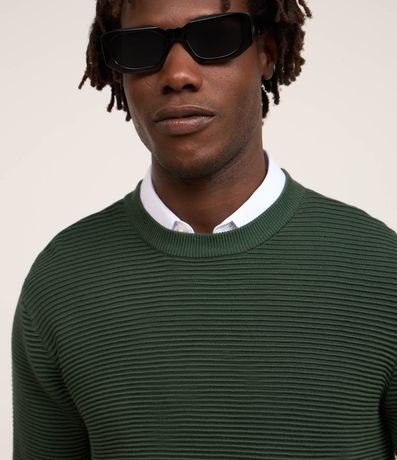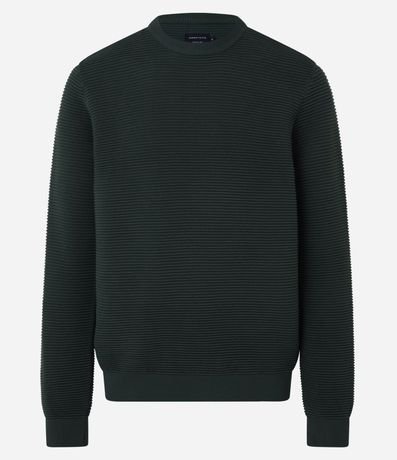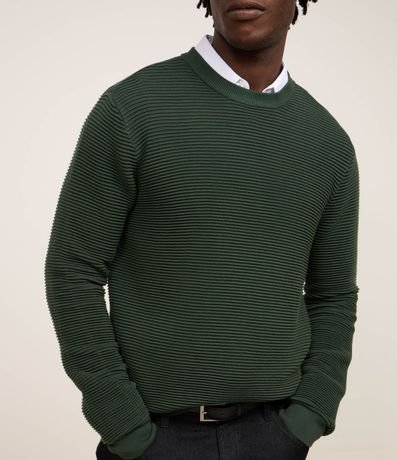 Ref: Suéter masculino, confeccionado em tricô leve, com gola redonda, mangas longas, punhos ajustado e texturas horizontais.