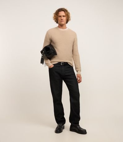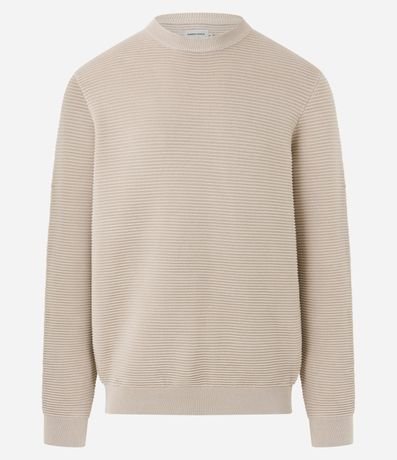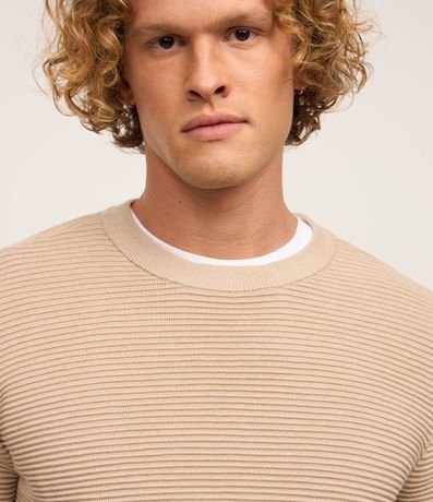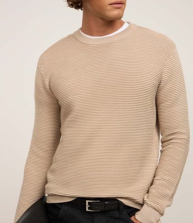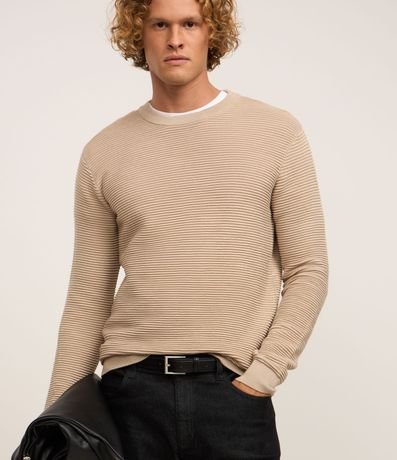 Ref: Suéter masculino, confeccionado em tricô leve, com gola redonda, mangas longas, punhos ajustado e texturas horizontais.