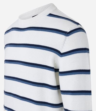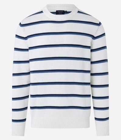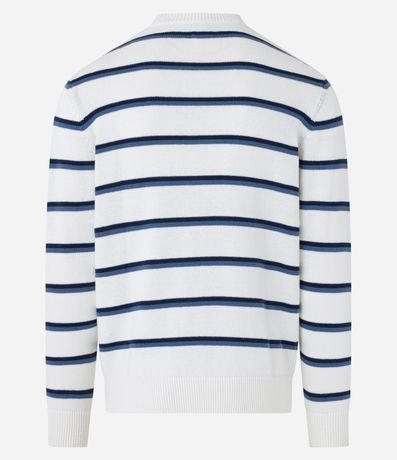 Suéter listrado masculino, de tricô, confeccionado em material mais sustentável, com detalhes canelados.