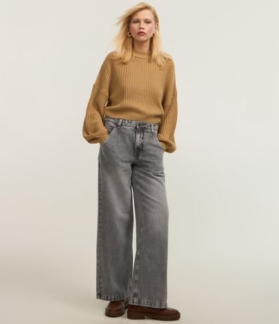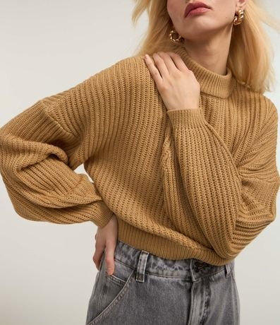 Ref: Blusão suéter em tricô com punhos ajustados. Possui malha texturizada.