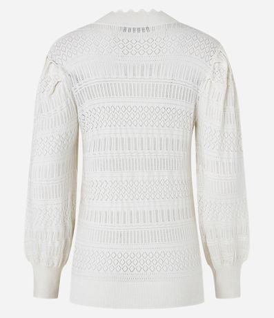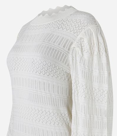 Ref: Suéter manga longa em tricot com pontos diferenciados e scallop na gola.