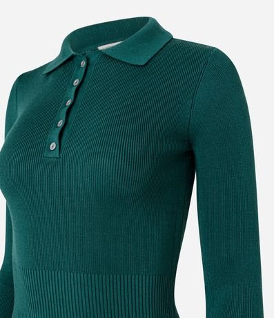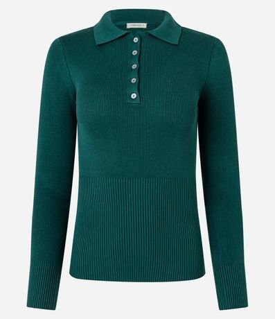 Ref: Suéter em viscose manga longa gola polo com botões.