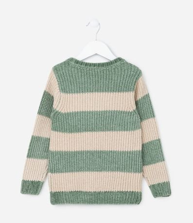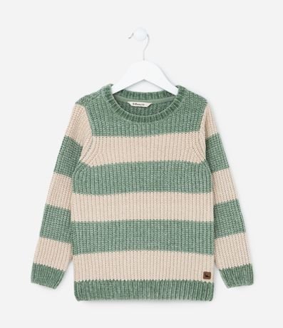 Ref: Suéter infantil confeccionado em chenille, com gola redonda, manga longa e estampa de listras. Possui etiqueta aplicada na barra com estampa de dinossauro