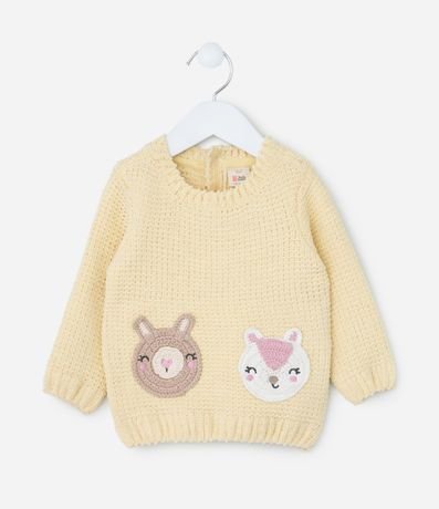 Suéter Infantil em Chenille com Bordado Bichinhos - Tam 0 a 18 meses