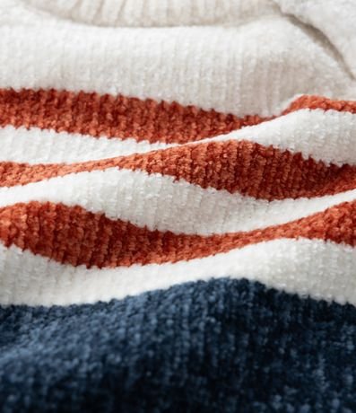Suéter infantil confeccionado em chenille, quentinho e confortável! Possui gola redonda, mangas longas e bordado de esquilo, leão e ursinho, com fundo listrado.
