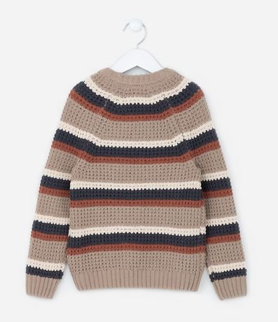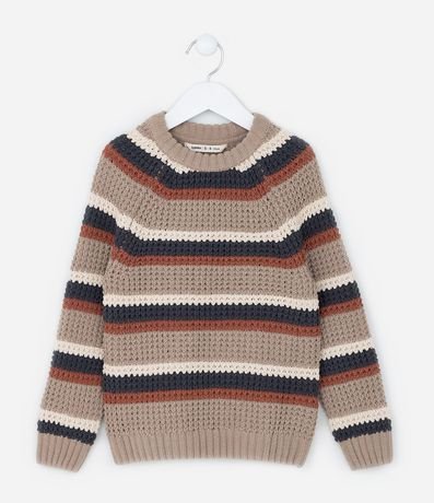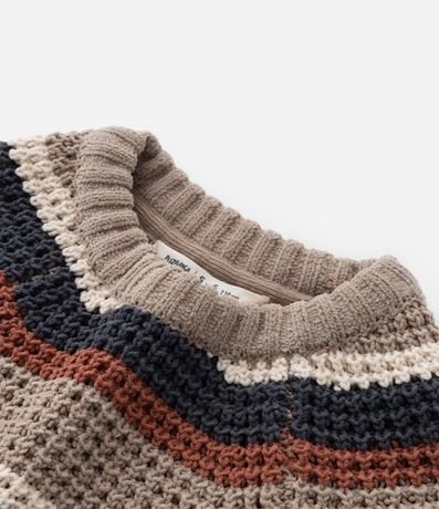Ref: Suéter infantil confeccionado em chenille quentinho, com gola redonda, mangas longas e estampa listrada.