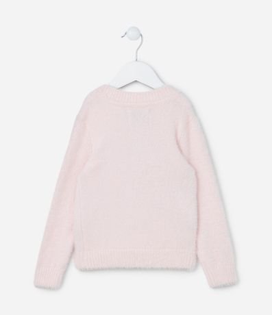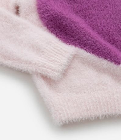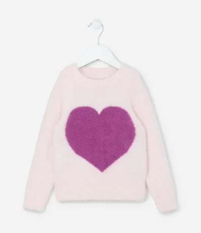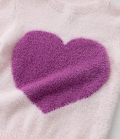 Ref: Suéter infantil confeccionado em chenille, peludinho, com gola redonda, manga longa e estampa coração.