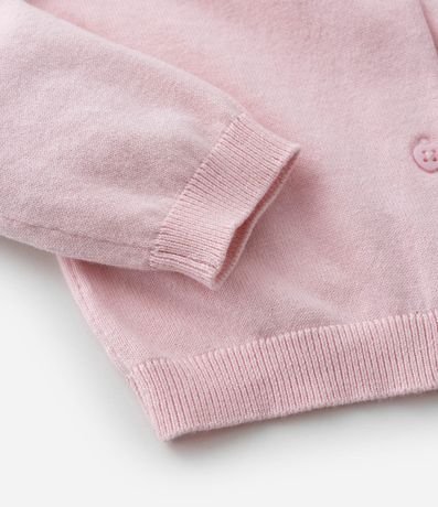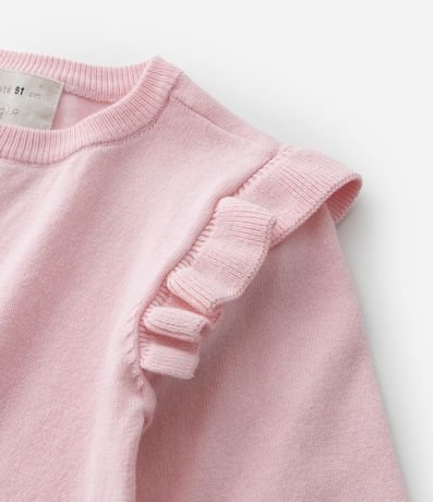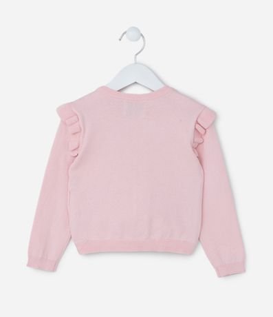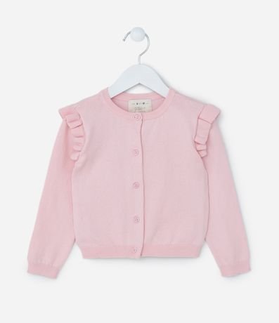 Ref: Suéter infantil confeccionado em tricô quentinho, com gola redonda, manga longa e babadinhos no ombro. Possui fechamento por botões na frontal.