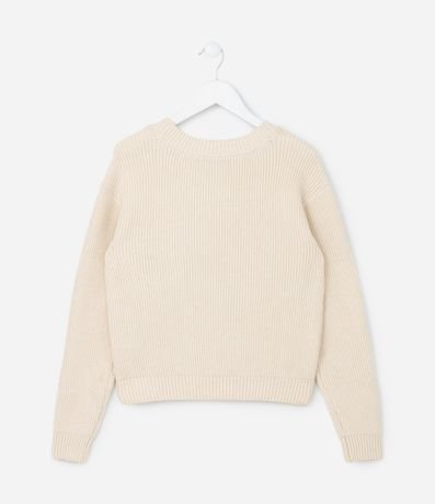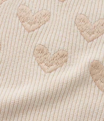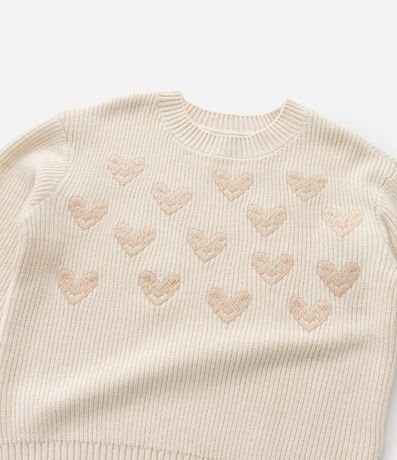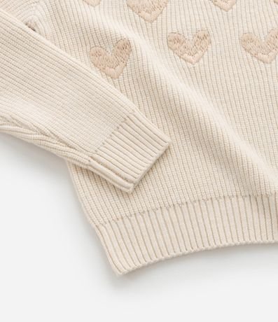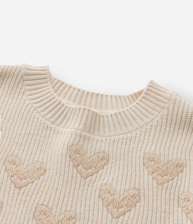 Ref: Suéter infantil confeccionado em tricô, com gola redonda, mangas longas e bordado de corações.