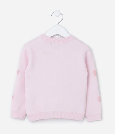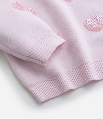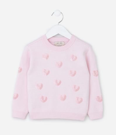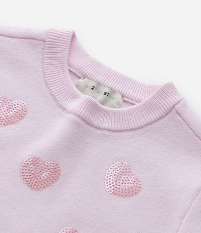 Ref: Suéter infantil confeccionado em tricô de viscose certificada, mais sustentável. Possui gola redonda, manga longa e bordado de corações em paetês.