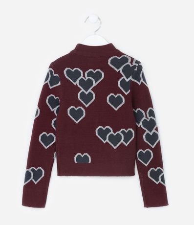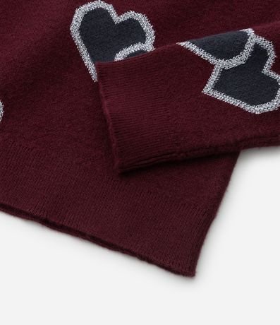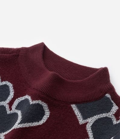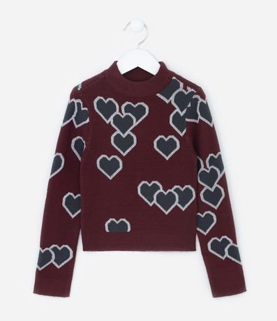 Ref: Suéter infantil confeccionado em tricô, com golinha alta e mangas longas, possui estampa de corações.