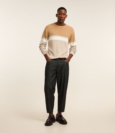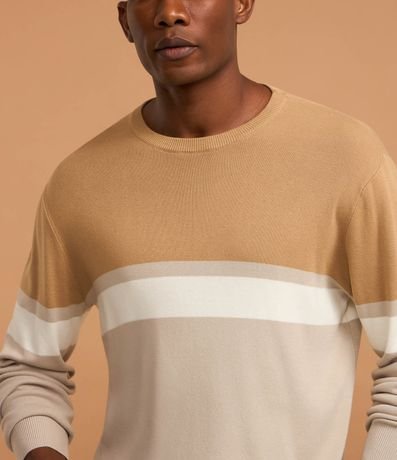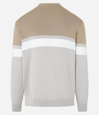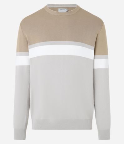 Ref: Suéter masculino confeccionado em viscose mais sustentável com gola redonda, manga longa. Peça regular com padronagem de bloco de cores.