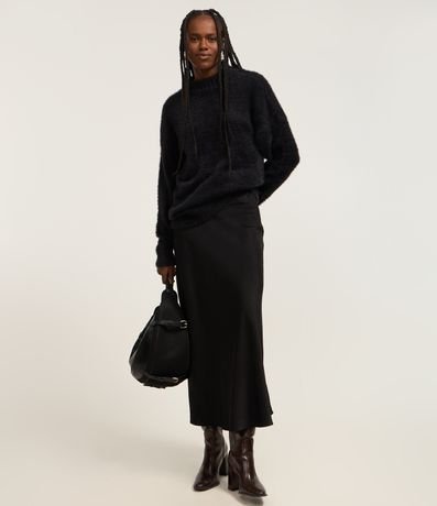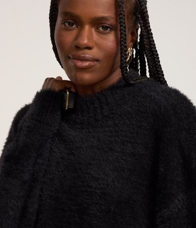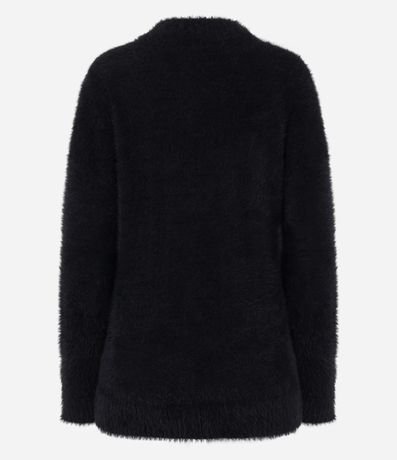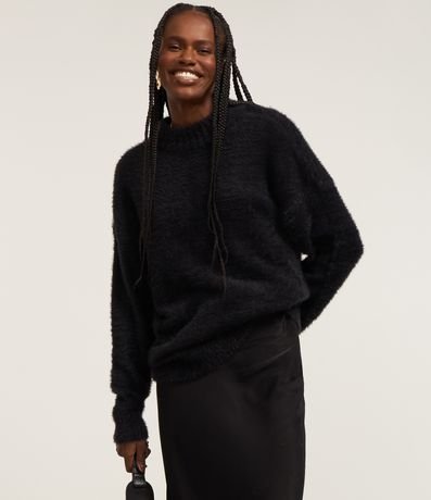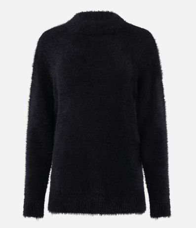 Ref: Suéter em tricô com gola redonda e mangas longas ajustadas. Peça no modelo slim alongado com efeito de pelinhos.