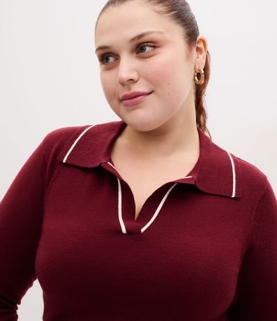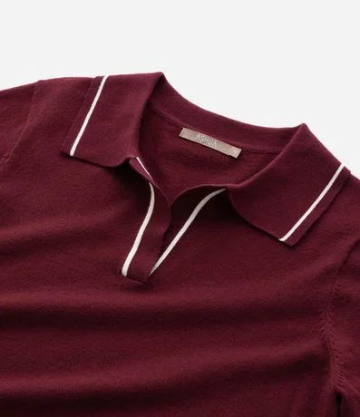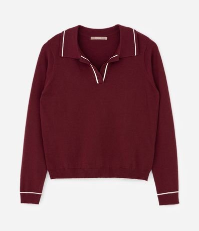 Ref: Suéter confeccionado em tricô retilínea leve com caimento confortável. Modelo slim com gola polo, mangas longas e punhos canelados. Possui acabamento com listras contrastantes na gola e nos punhos, garantindo visual sofisticado e moderno para compor looks elegantes.