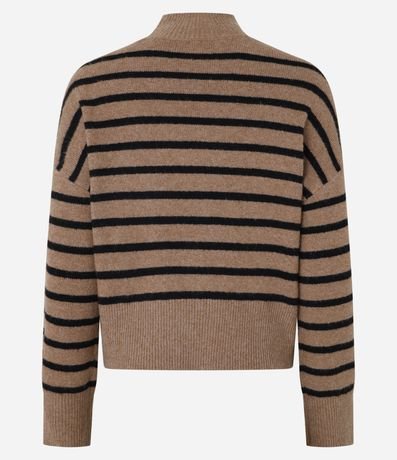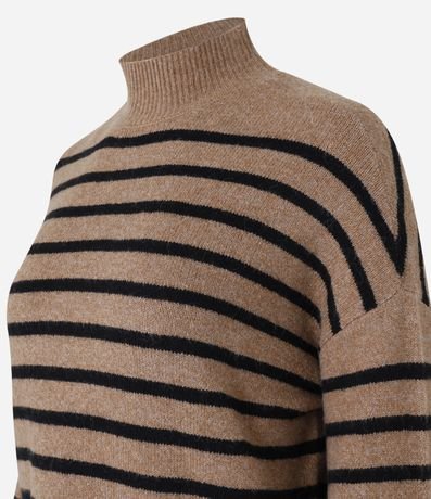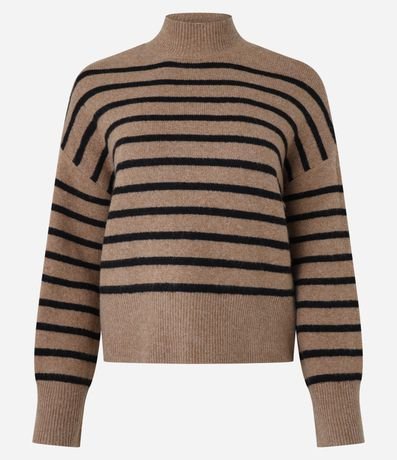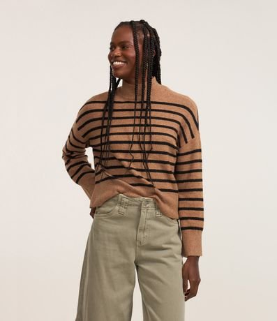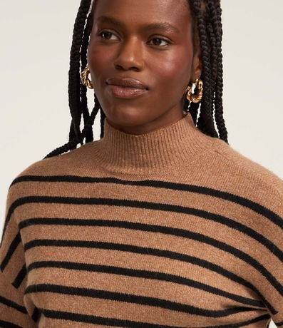 Suéter Slim em Tricô Leve Listrado com Gola Alta