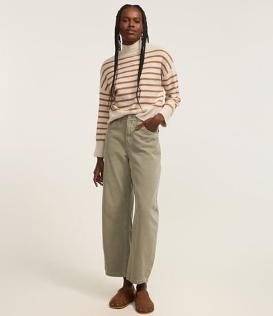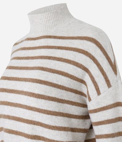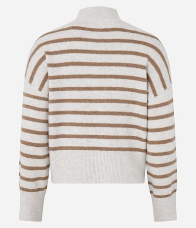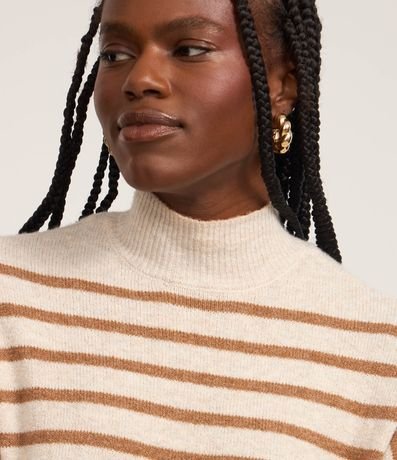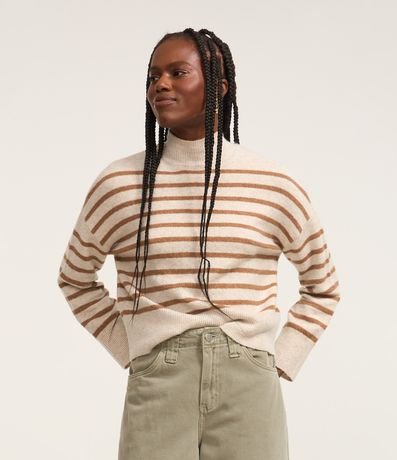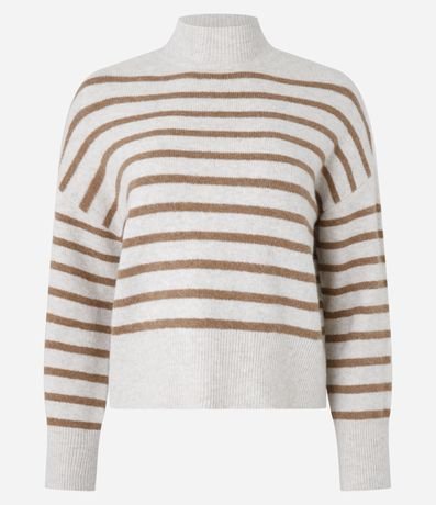 Ref: Suéter de tricô leve com comprimento regular e ajuste slim. Essa blusa de frio tem golinha alta, cavas deslocadas, mangas longas e estampa listrada.