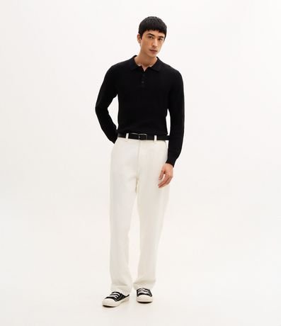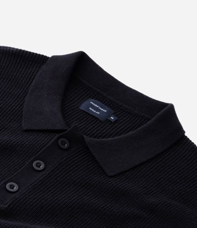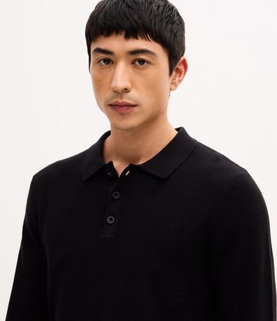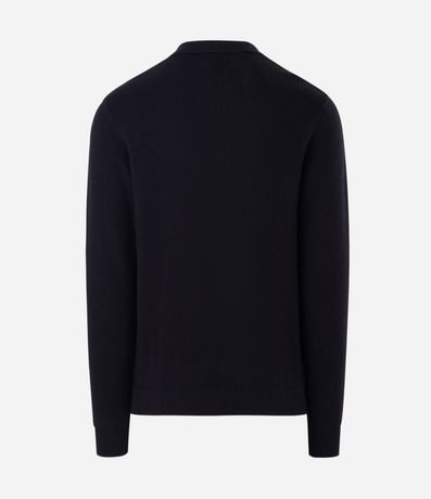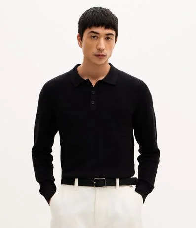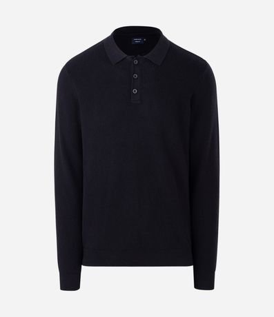 Ref: Suéter masculino confeccionado em algodão e texturizado. Possui gola polo, manga longa, punhos e barras canelados e sem estampa.