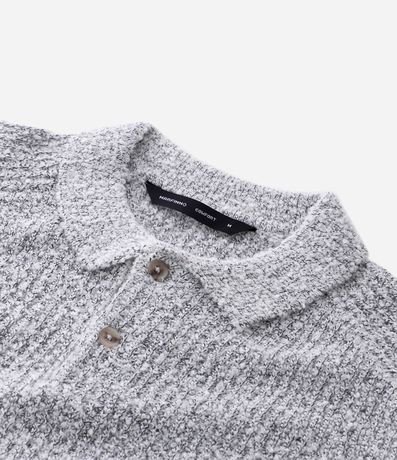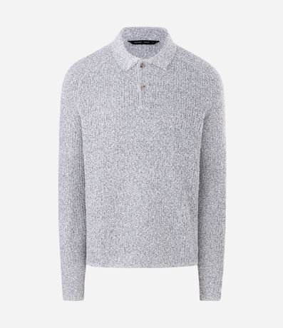 Ref: Suéter masculino, confeccionado em viscose. Possui gola polo, mangas longas, barra e punhos ajustados.