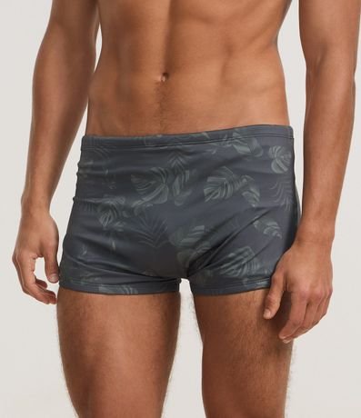Ref: Sunga de microfibra com estampa de folhagem e amarração no interior do cós.