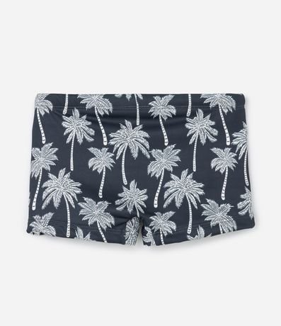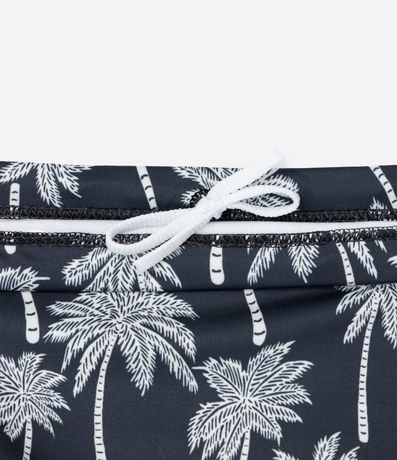 Sunga infantil confeccionada em microfibra, possui ajuste interno, no cós e estampa de coqueiros.